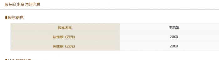 公开资料显示,北京普思投资有限公司成立于2009年12月,注册资本为2000万元,法定代表人为王思聪。根据股权结构,该公司由王思聪全资控股。