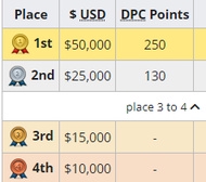 第一名:50000美元的奖金 250点DPC积分