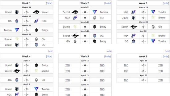 下面是DPC各大赛区对阵情况,注意东欧独联体地区由于战争的缘故被推迟了,不知道何时能恢复。以目前的状况,今年东欧队伍可能不会对中国战队夺得TI冠军造成什么威胁了。